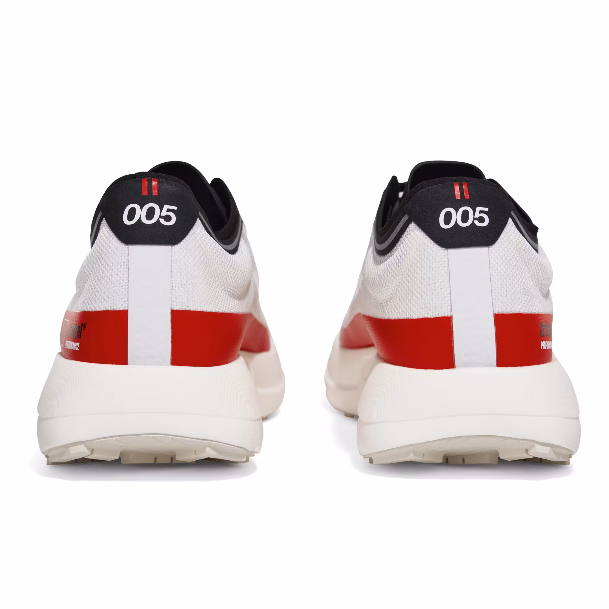 While most super shoes are engineered for race day, the 005 is engineered for race days — plural. The combined use of the world’s most advanced materials and compounds allows for sustained super shoe performance over an unparalleled amount of mileage through all terrain and conditions.