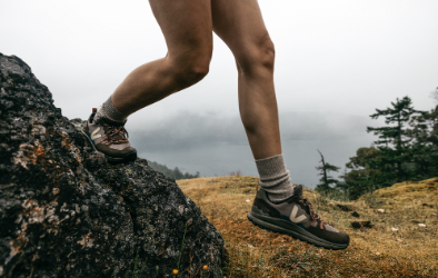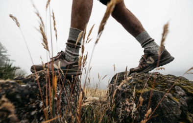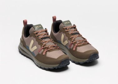 The Fitz Roy, VEJA’s hiking shoe, travels to Cornwall for a collaboration with Finisterre. Designed with sustainable materials, it stands out with its robust sole and multidirectional lugs, providing stability and protection.