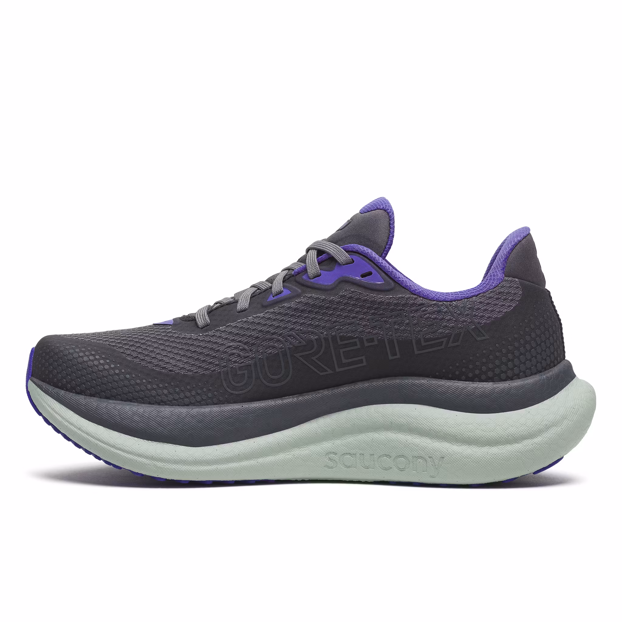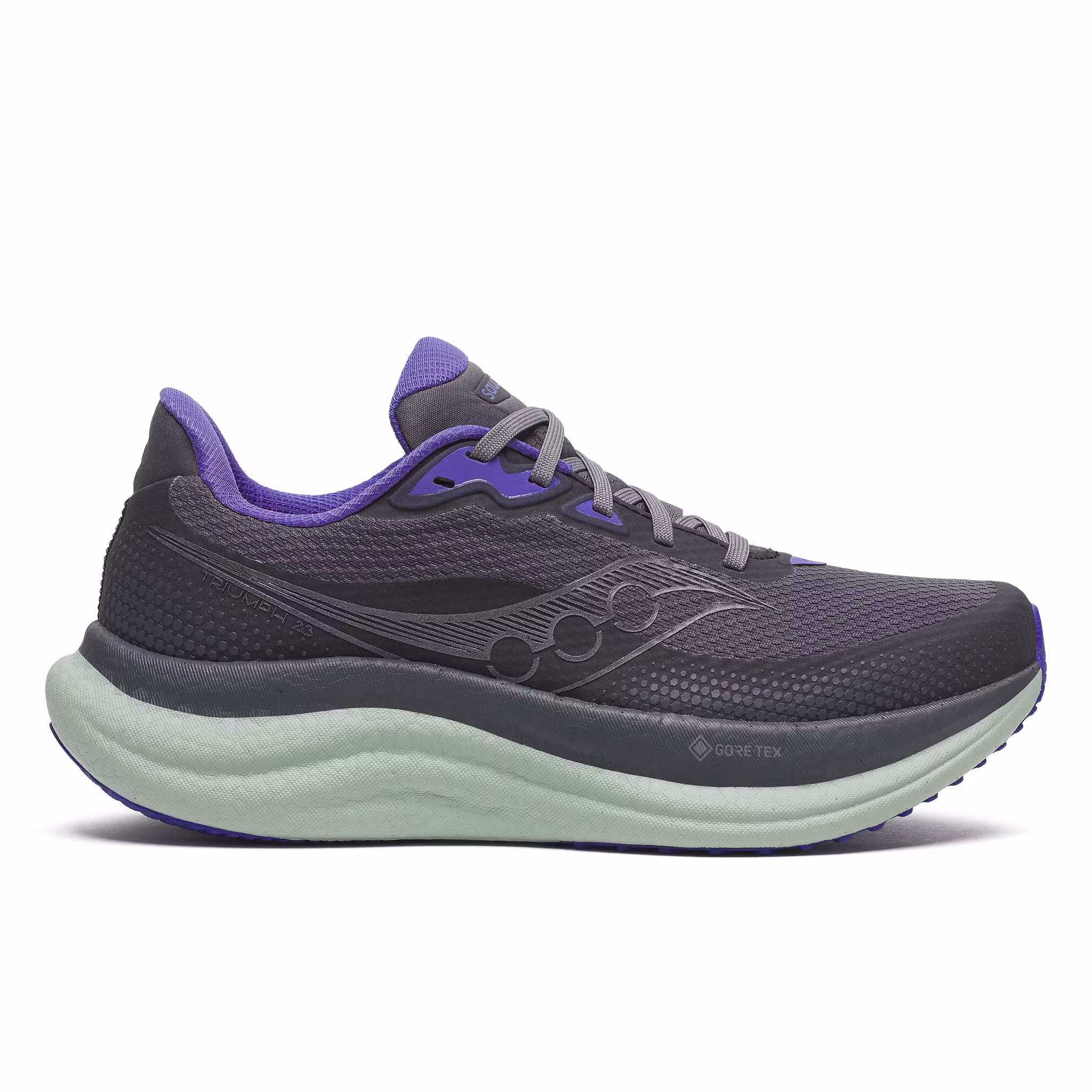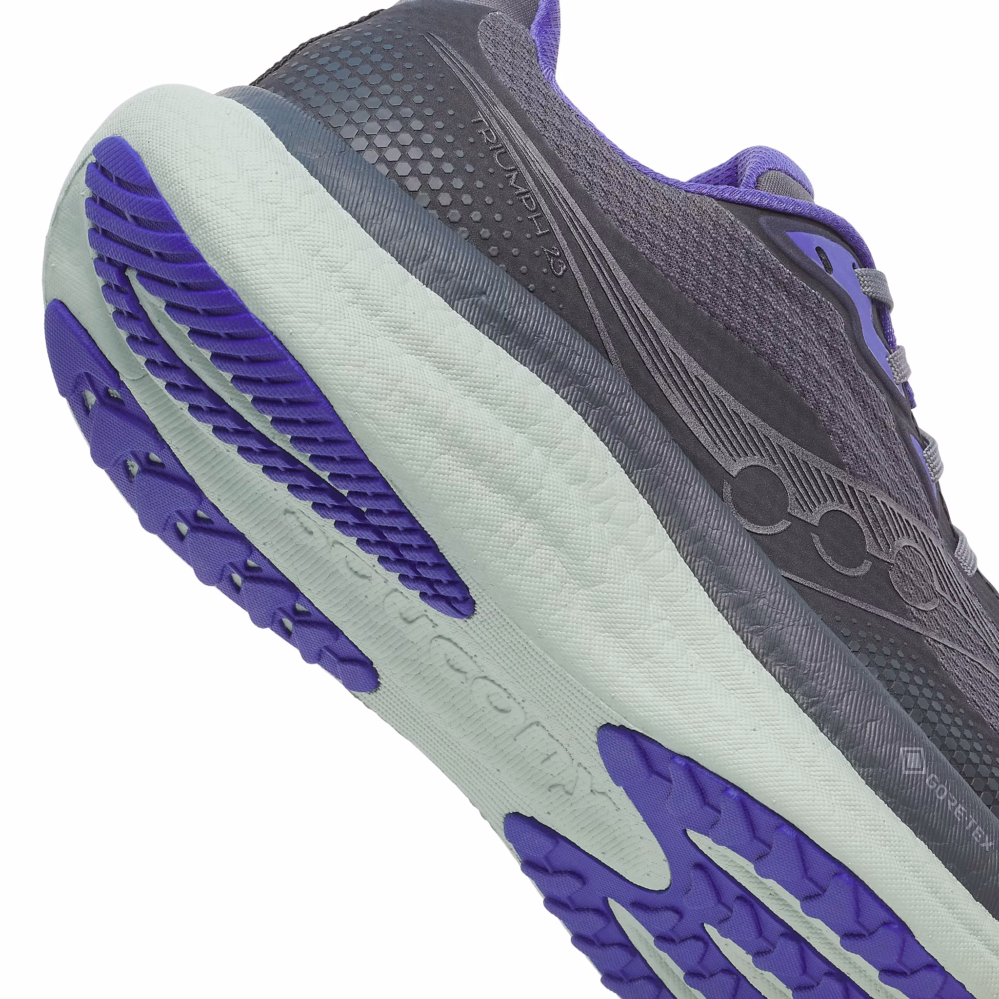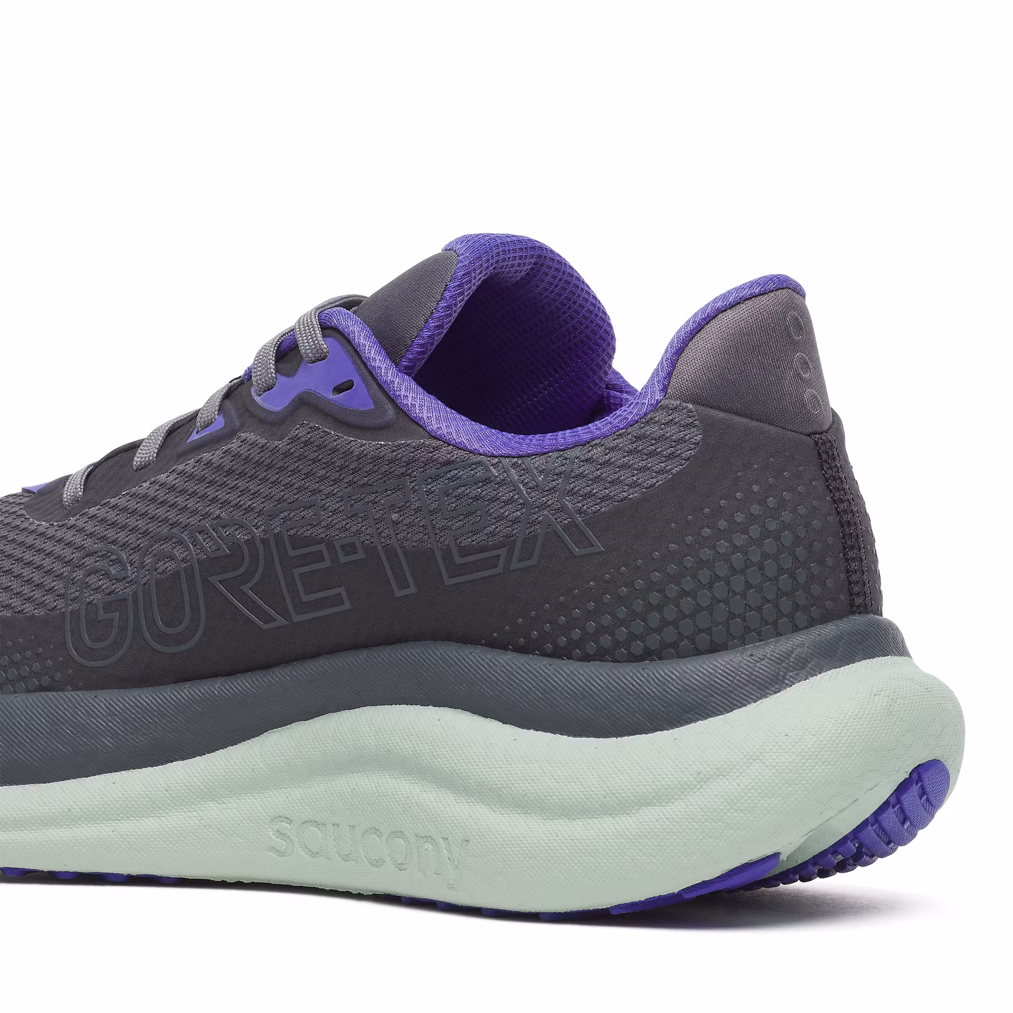 Den nya Triumph 23 Gore-Tex är det självklara valet för dig som vill ha det bästa av allt: Överlägsen komfort i alla väder, fantastisk stötdämpning och energiåtergivning. Försedd med ett PFAS free Gore-Tex Invisible Fit Membran blir Triumph 22 perfekt lämpad för träningspass eller vardagsaktivitet under växlande väderförhållanden. Mellansulan består av Sauconys bästa PWRRUN PB! Ett lättare, mer stötabsorberande och energiåtergivande än tidigare stötdämpande material. Jämfört med EVA-baserade material så är livslängden dessutom tre gånger så lång, samt att påverkan av yttertemperatur är minimal. Kombinationen av 10 mm dropp, en tydlig rundad häl- och framdel på mellansulan ger en mjuk och avlastande känsla. Den bredare sulbasen ger en ökad markkontakt vilket minskar rotationskraften från isättning till maxbelastning.